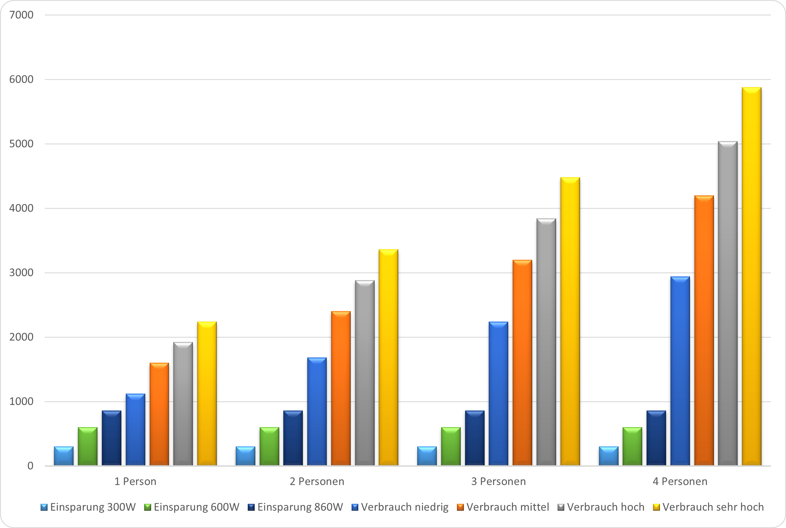 - bei 600 kWh und 860 kWh einem noch deutlich größeren Anteil Ihres Haushaltsstroms