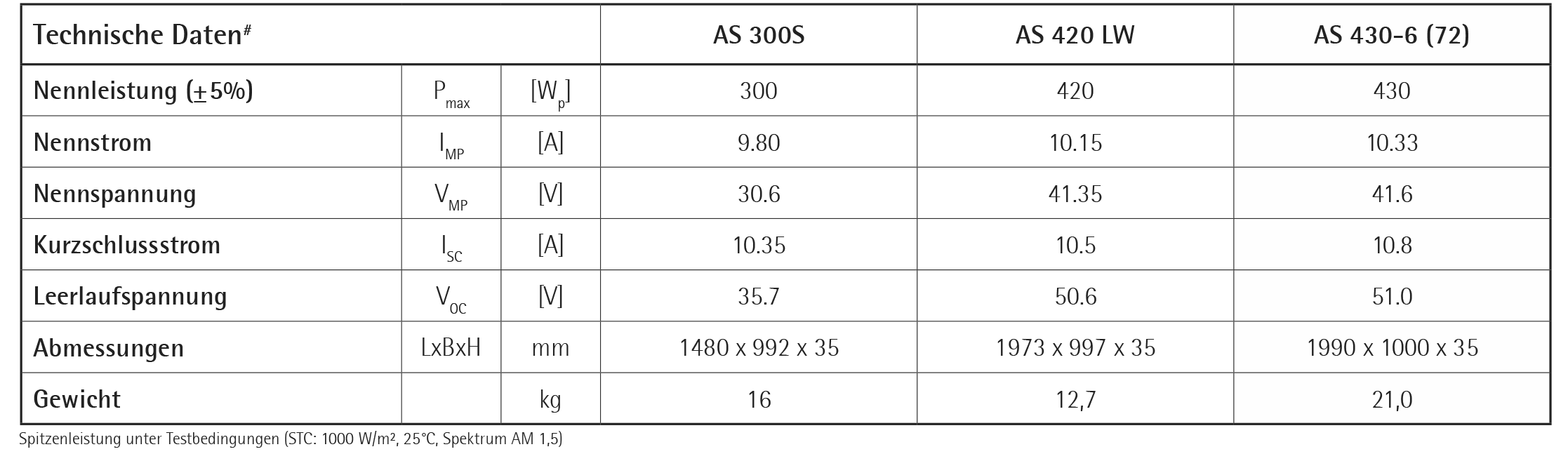 SUNSET Solarmodule „AS 300S“ / AS 420 LW / AS 430-6 (72)